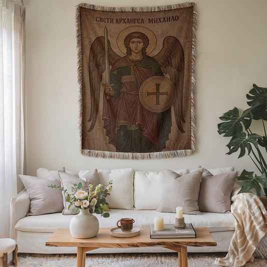 Sveti Arhangel Mihailo Icon Medieval Art Print Woven Blanket