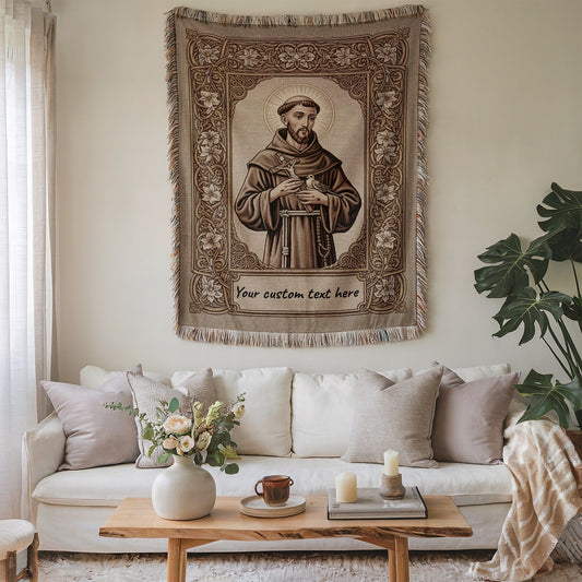Saint Francis Dove And Cross Portrait Custom Woven Blanket