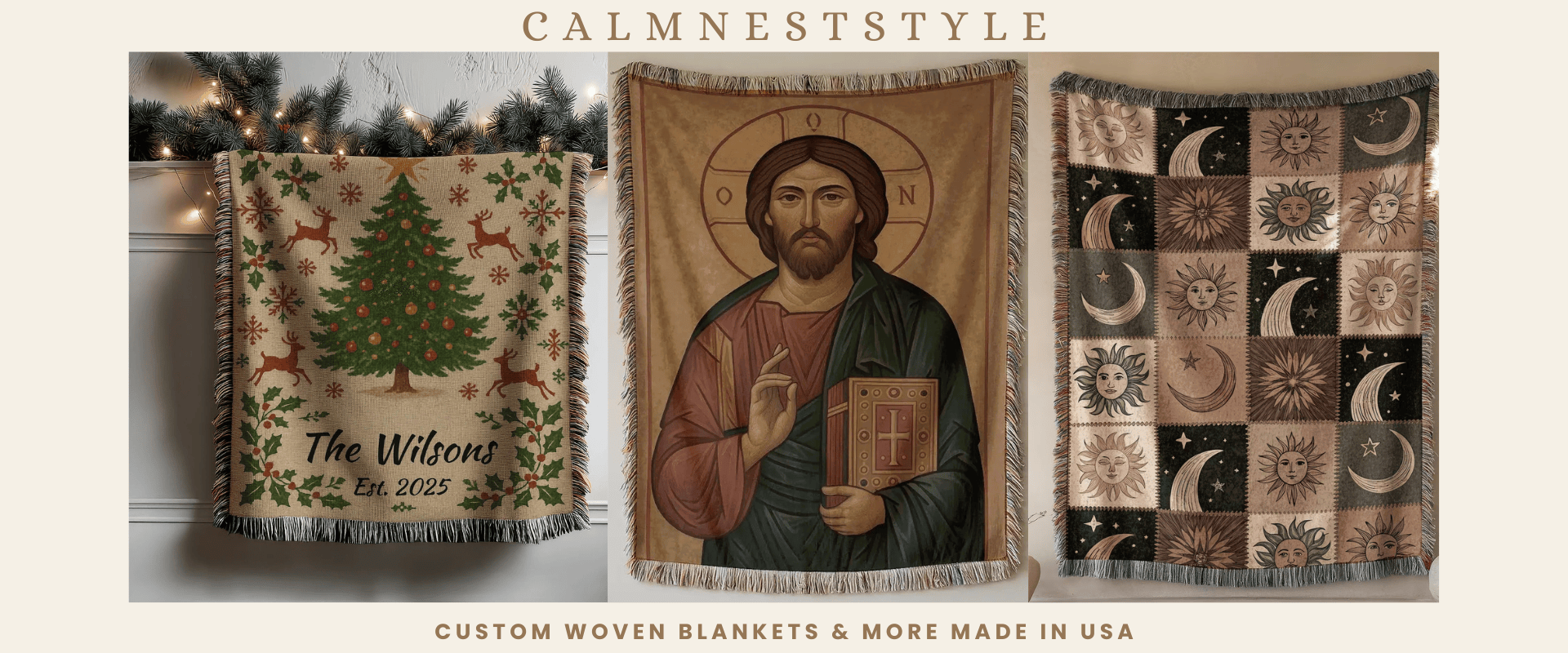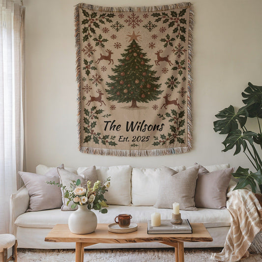 Personalized Christmas Gift - Family Name Festive Woven Blanket Holiday Gift