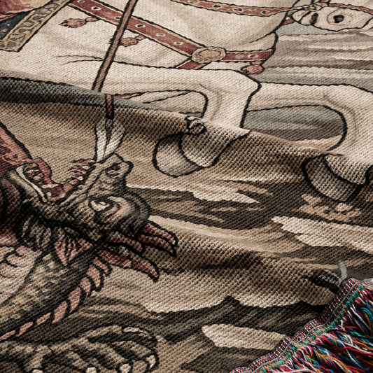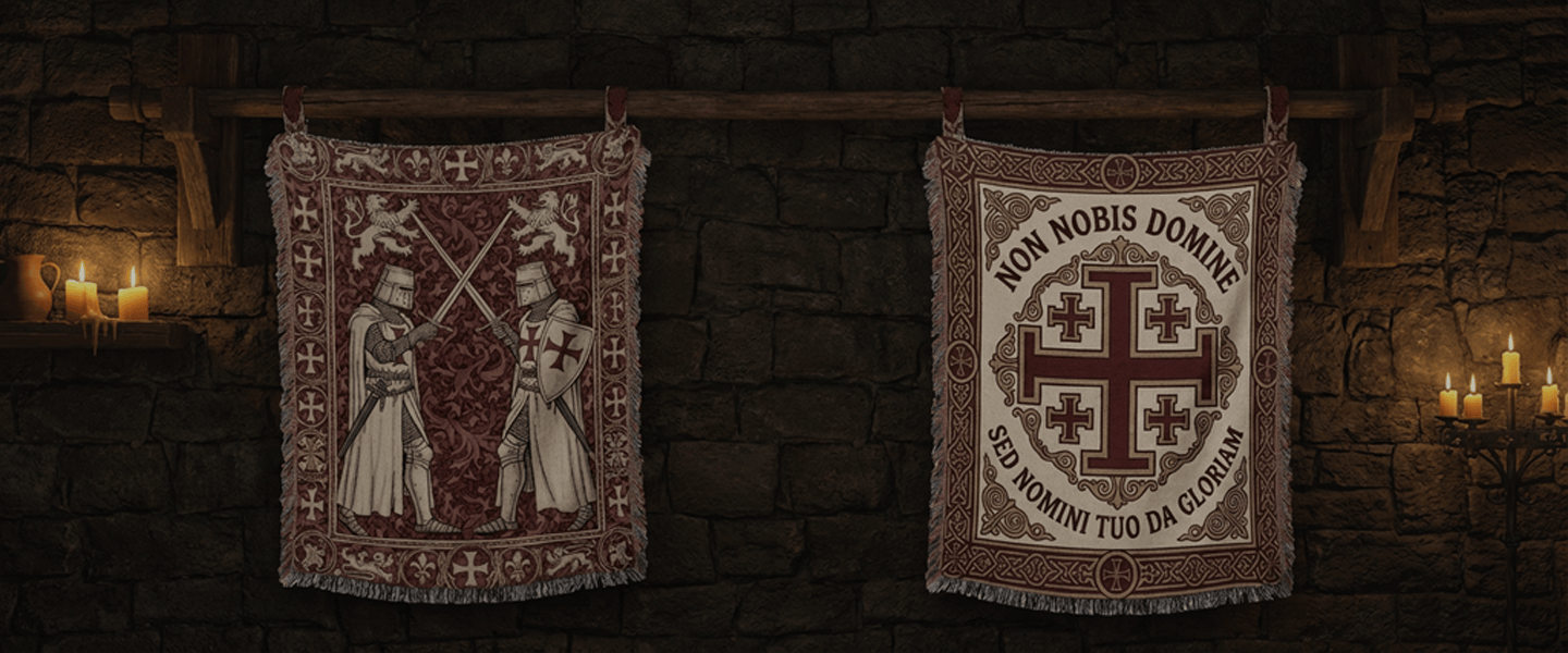 Crusader on Horse Woven Blanket Templar Flag Throw
