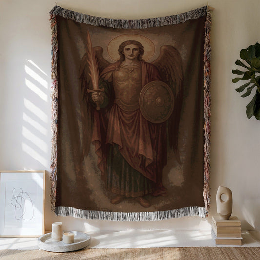 Saint Michael the Archangel with Shield and Sword Woven Blanket