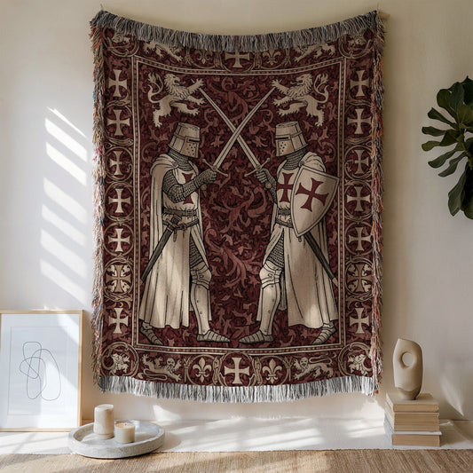 Crusader Duel Woven Blanket Templar Knights Art Throw